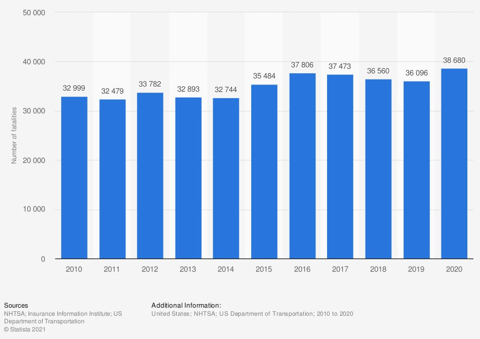 Traffic-related fatalities in the United States reached a high of almost 38,700 last year.