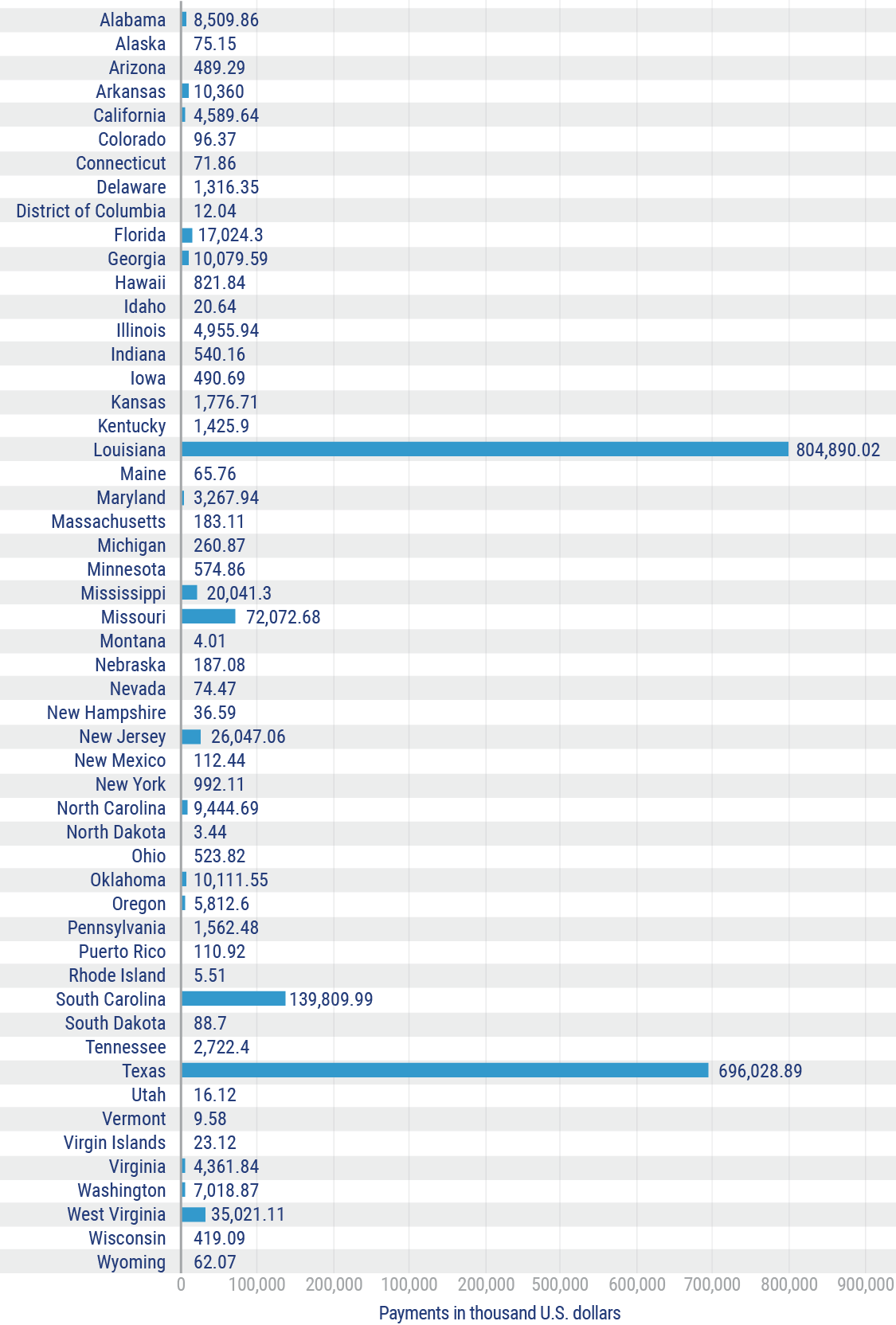 Flood insurance claim payments in the United States from October 1, 2015, to September 30, 2016, by state (in thousand US dollars)