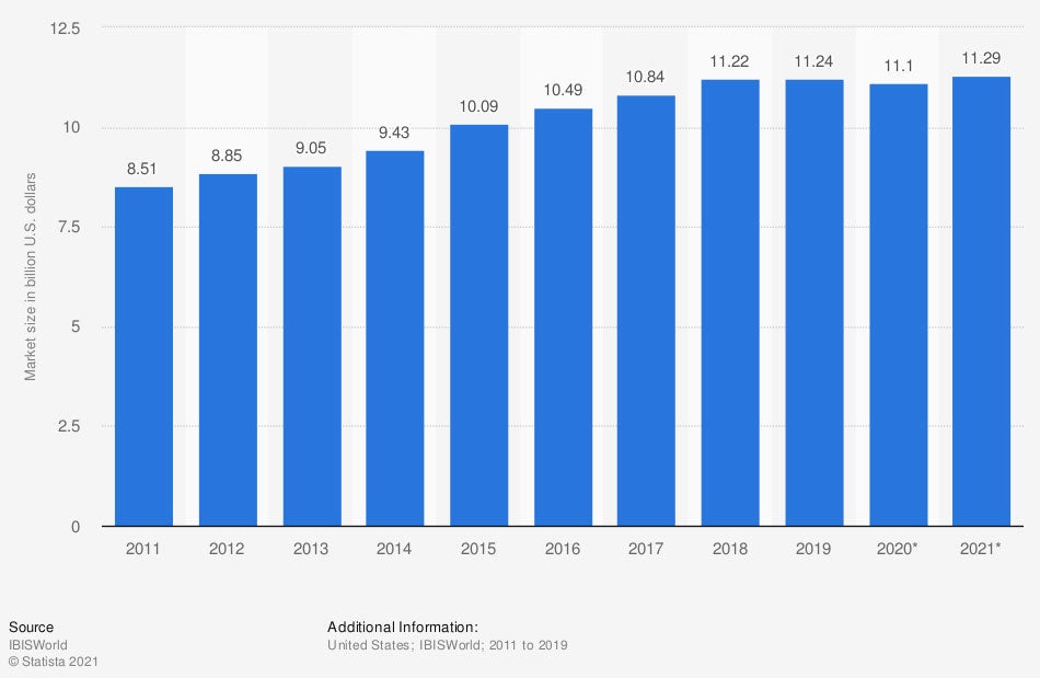 chart - https://www.statista.com/statistics/1175807/bakery-cafe-industry-market-size-us/