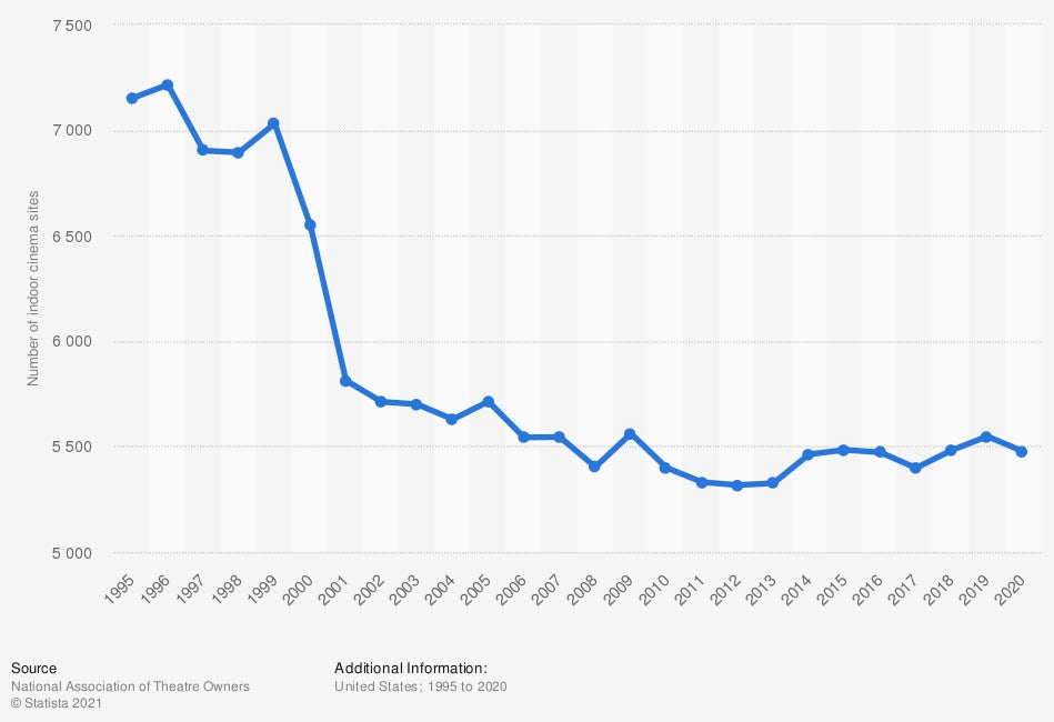 chart 1- https://www.statista.com/statistics/188624/number-of-us-indoor-cinema-sites-since-1995/